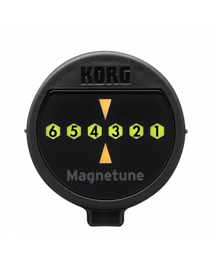 AFINADOR CROMÁTICO Afinador Korg Magnetune. El Magnetune se sujeta magnéticamente directamente al clavijero y afina tuguitarra. Déjalo en tu guitarra para afinar fácilmente mientras tocas, sujétalo a tu atril, o simplemente llévalo en el bolsillo. Escala: 12-notas temperamento igual. Rango de afinación (onda sinusoidal): E2 (82.41 Hz) ? E7 (2637.02 Hz). Precisión de Detección: +/- 1 centésima. Tono de Referencia: 440 Hz. Dimensiones: 33 x 35 x 13 mm. Peso: 11 g.
