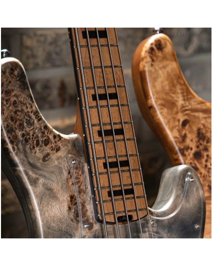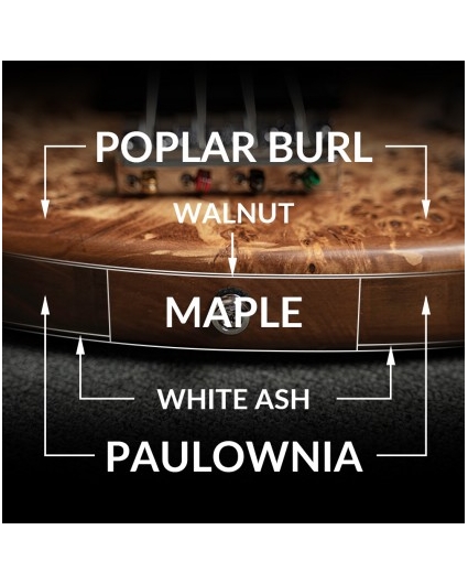 A menudo, el peso del instrumento afecta la experiencia de tocar, y en un instrumento más grande como un bajo, el mayor peso causa más fatiga. Mientras muchos fabricantes buscan soluciones recortando grandes secciones de madera para reducir el peso, el cuerpo del GB Modern está inteligentemente diseñado para ser igual de liviano sin restringirlo físicamente. El núcleo del cuerpo de Arce se combina con alas de Paulownia livianas, luego se cubre con una hermosa madera de Alamo en la parte superior y Fresno blanco en la parte posterior, dando como resultado una combinación de grandes maderas tonales que son sónica y estéticamente excelentes.