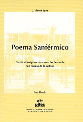 Libro o partitura "Poema Sanférmico/ Score & Parts A-4" instrumentado para Banda, de la editorial PILES EDITORIAL DE MUSICA, S.A..