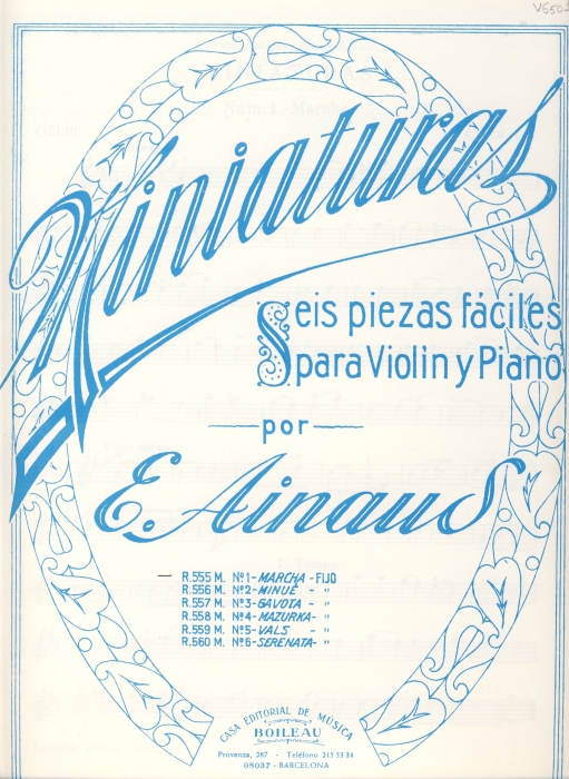 Libro o partitura "Miniaturas Nº 5 -Vals" instrumentado para Vl-Pno, de la editorial EDITORIAL BOILEAU, S.A..