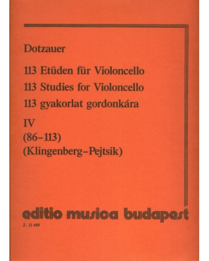 Libro o partitura "113 Studies for Violoncello IV (86-113)" instrumentado para Didáctica, de la editorial EDITIO MUSICA BUDAPEST.