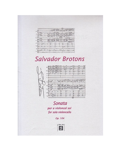 Libro o partitura "Sonata Per A Violoncel Sol Op.104" instrumentado para Vlc, de la editorial Brotons & Mercadal.