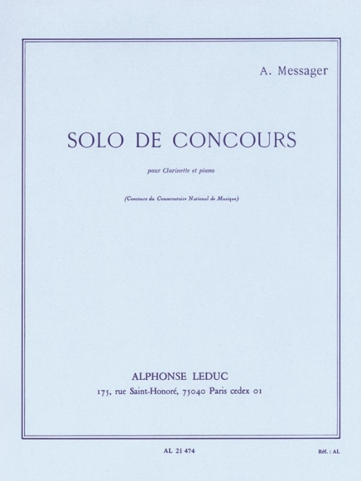 Libro o partitura "Solo de Concours Pour Clarinette et Pian" instrumentado para Cl-Pno, de la editorial ALPHONSE LEDUC EDITIONS MUSICALES.