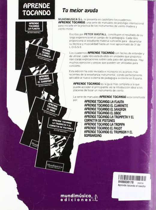 Método Aprende Tocando el Saxofón, instrumentado para Saxofón Didáctica, realizado por Peter Wastall de la editorial MUNDIMUSICA.