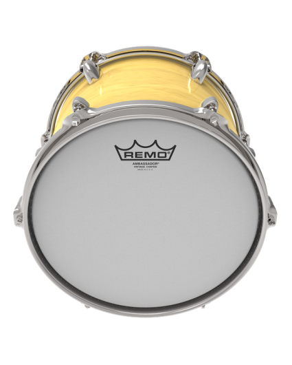 Parche Tom Remo Ambassador Vintage Blanco Rugoso 14" VA-0114-00. Los parches Ambassador® Vintage Coated presentan tonos medios enfocados con una sensación suave. Combinando películas recubiertas de 7.5 mil y 3 mil en una construcción duradera de 2 capas, los parches Ambassador® Vintage Coated proporcionan la sensibilidad de Diplomat® Coated, el rango medio de Emperor® Coated y la durabilidad de los parches Ambassador® Coated. El Ambassador® Vintage Coated es el parche Tom and Snare más versátil de la industria.