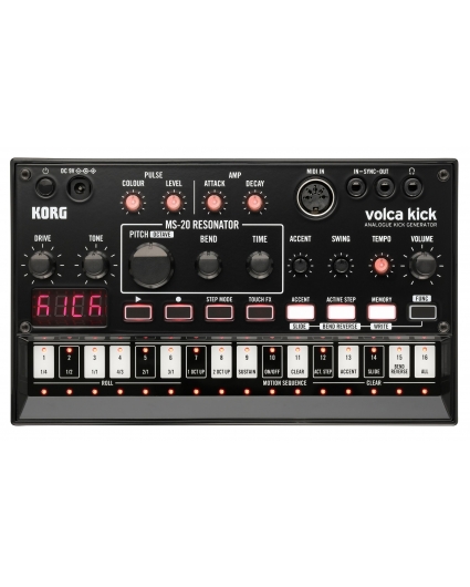 MODULO DE SONIDOS O SINTETIZADOR Módulo volca especializado en bombos y bajos. Circuito analógico basado en el potente sonido del filtro resonante MS-20 original. Secuenciador de 16 pasos. Función touch FX.